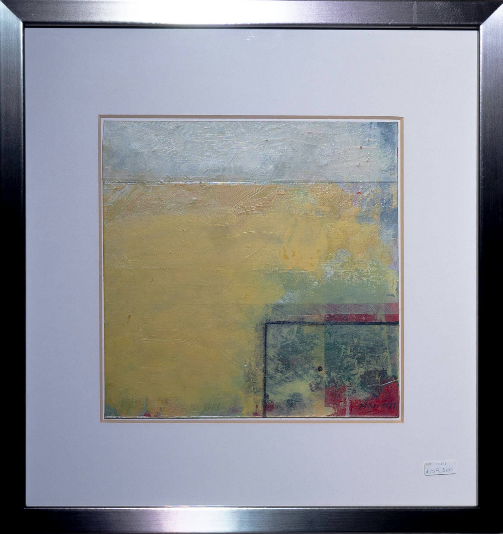 Pintura abstracta enmarcada (50×48.5 cm) que destaca por sus vivos tonos amarillos y verdes.