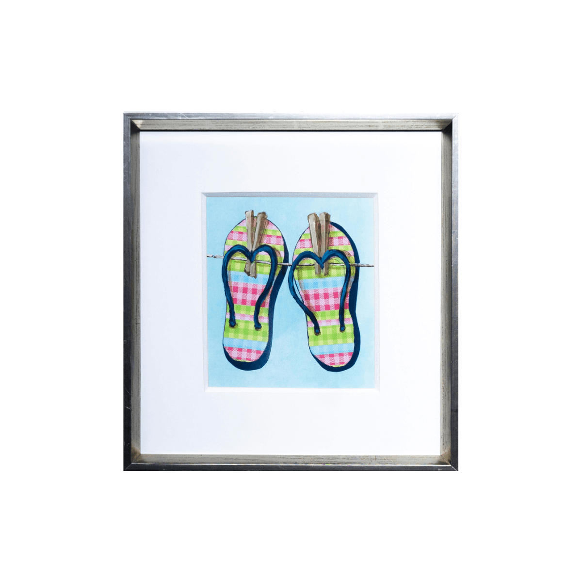 Arte de verano enmarcado de flip-flops de pastel (30×32 cm) por artista anónimo.