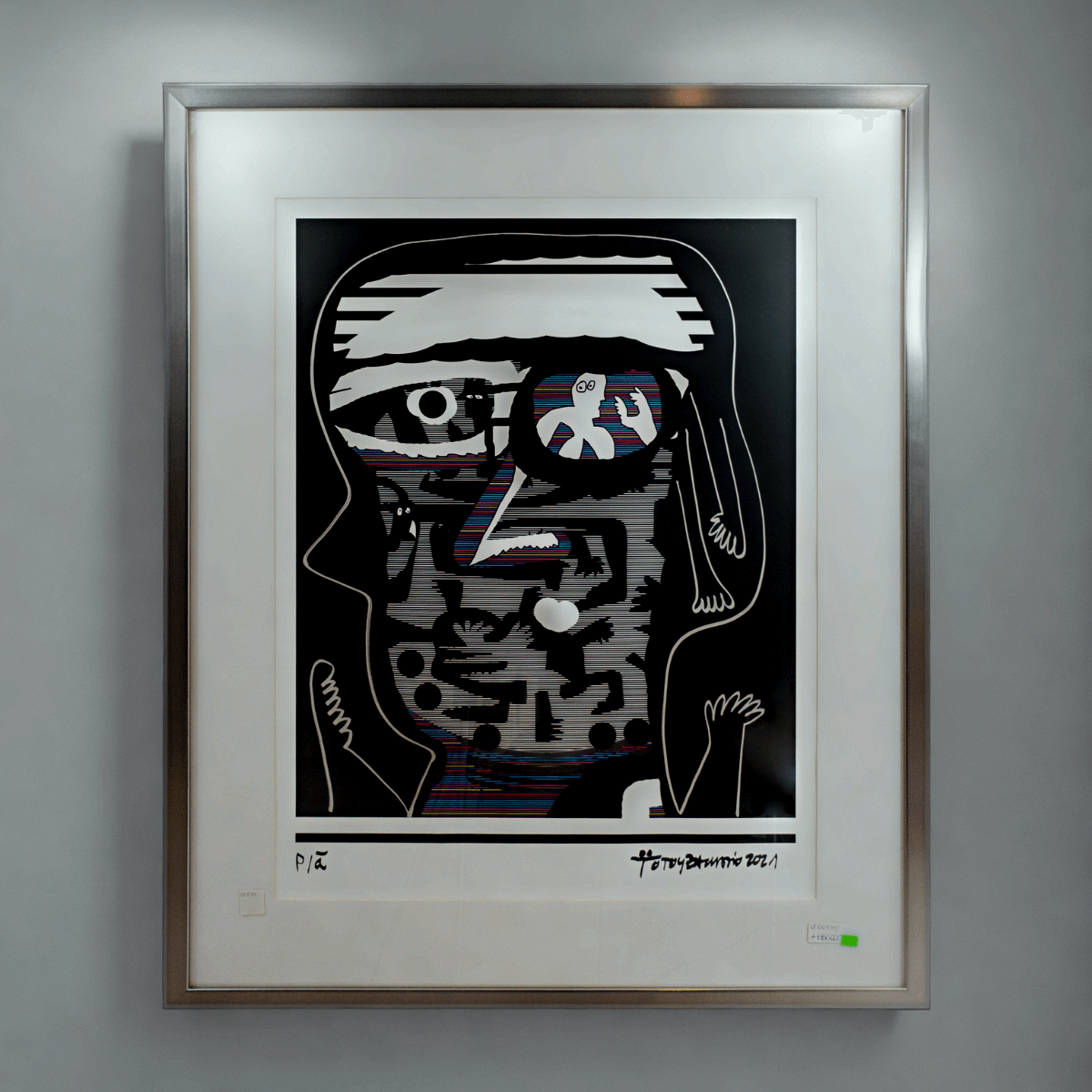 Obra de Totoy Zamudio (76×92.5 cm), un cautivador póster moderno con cabeza abstracta.