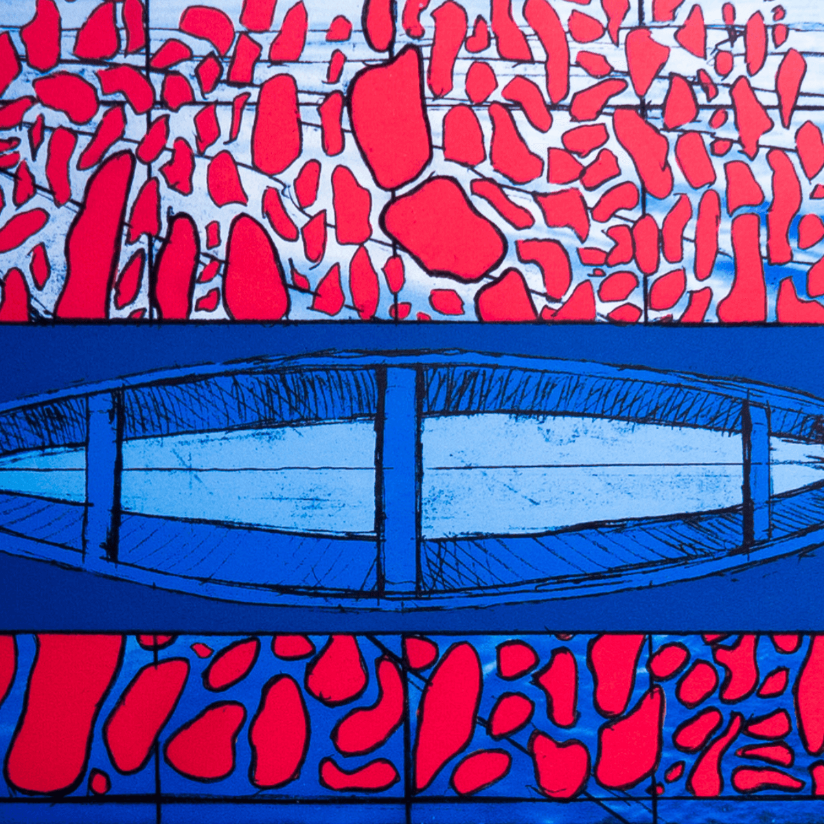 Ignacio Gana, reconocido por su contribución al arte contemporáneo, presenta esta obra abstracta que sorprende con su vibrante paleta de colores. La pintura enmarca formas geométricas en un fondo azul que contrasta maravillosamente con los tonos rojos, amarillos y negros. Con un tamaño de 80x65 cm, la pieza se destaca por su intrincada composición que invita a los espectadores a explorar sus múltiples significados. Perfectamente enmarcada, este arte moderno es ideal para decorar cualquier espacio con un toque de sofisticación y dinamismo. No pierda la oportunidad de añadir esta impresionante obra a su colección.