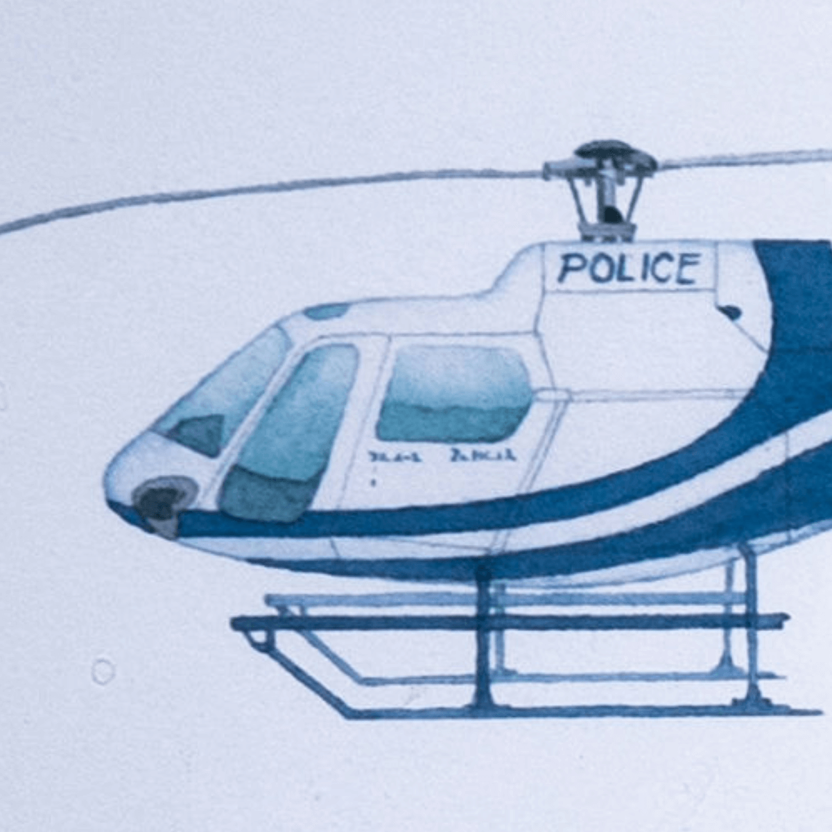Ilustración de Helicóptero Policial – Obra Enmarcada (28.5×21 cm)