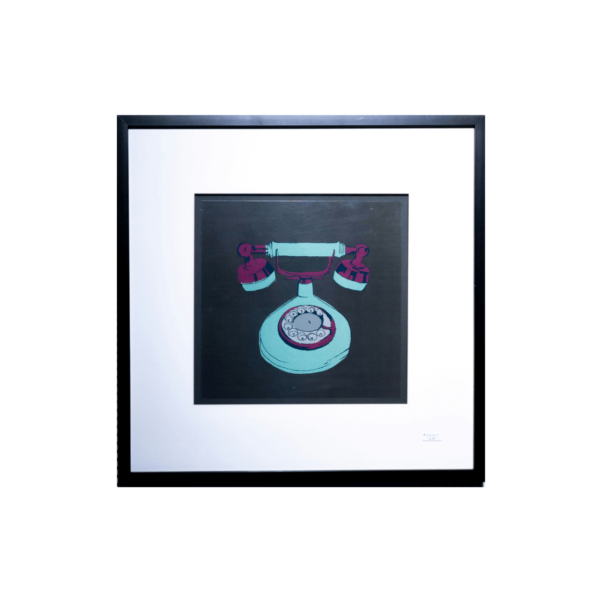 Este cautivador arte enmarcado de un teléfono de disco rotatorio destaca la obra de un artista anónimo que rinde homenaje al estilo moderno y minimalista del medio siglo. Presentado en un vibrante color teal, el teléfono se encuentra flanqueado por dos delicadas margaritas en tonos morados, creando un encantador contraste que añade un toque de naturaleza. Con dimensiones de 56 cm por 56 cm, este artículo elegante y nostálgico es ideal para embellecer cualquier espacio contemporáneo y evocar recuerdos de tiempos más simples. ¡Haz tuyo esta obra única y dale un giro especial a tu decoración!
