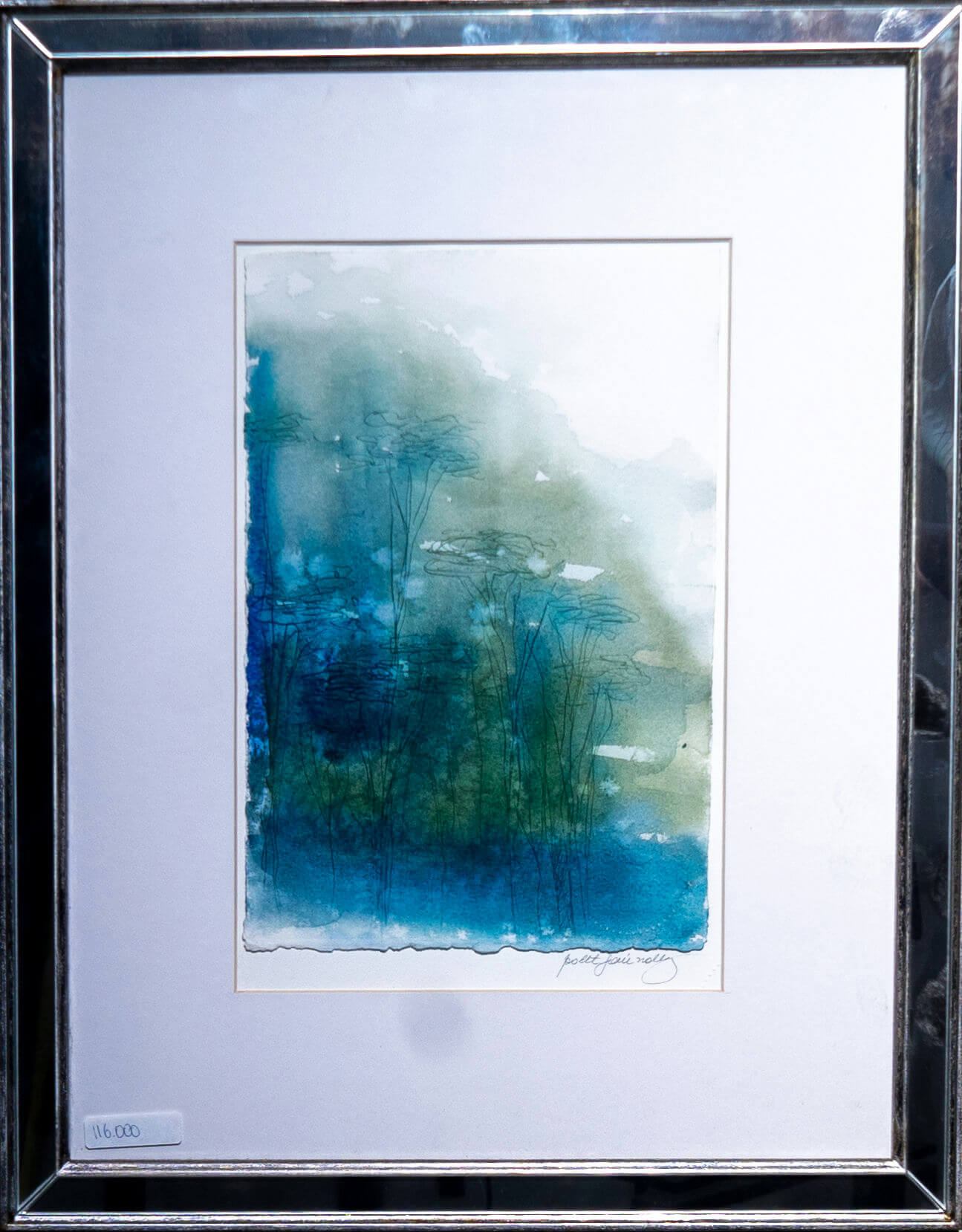Pintura (39.5×50 cm), un vibrante paisaje acuarelado con elementos abstractos.